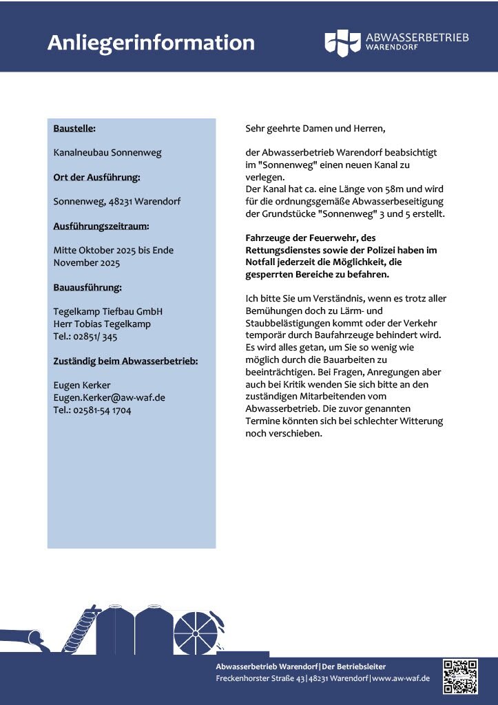 | Erneuerung der öffentlichen Abwasseranlage in den Straßen Im Leinenfeld und Am Nordufer |